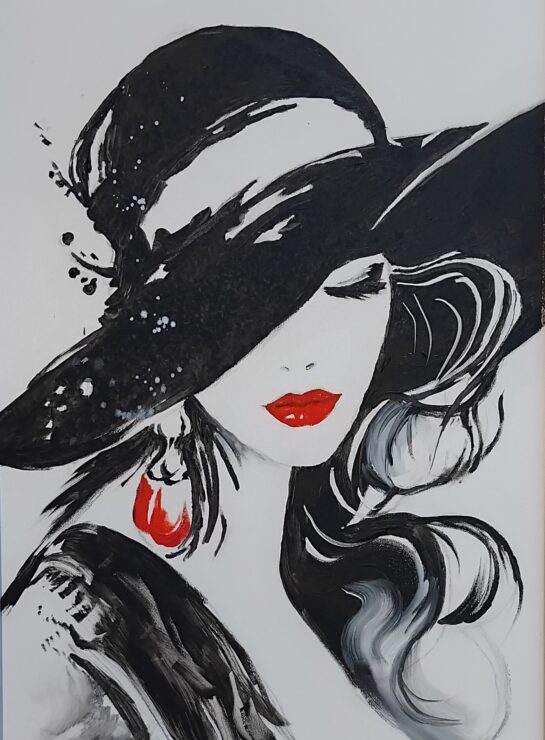 Vörös fülbevalós hölgy, 50×30 cm, olaj, farost